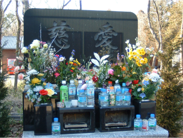 営業時間内いつでも自由にお参りいただける合同供養塔を完備しております。供養塔の隣にはみんなが寂しくないよう、四季折々の花で彩られたミニガーデンがあります。心を込めてご供養しておりますので、どうぞゆっくりお参り下さい
